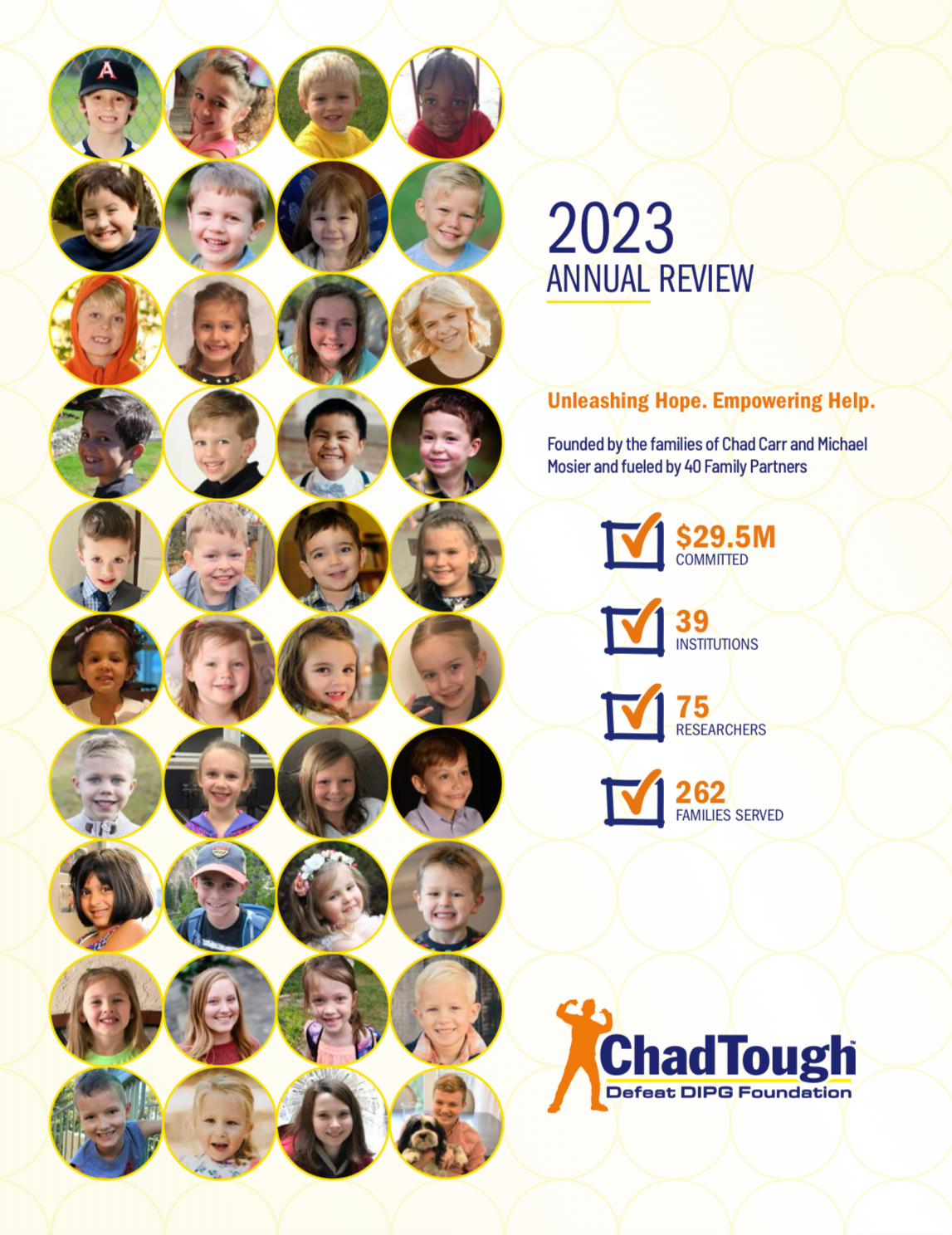 In each annual impact report, you’ll find an overview of all the foundation accomplished that year. Read about the incredible projects we helped fund, inspiring stories of DIPG warriors, and more about our Family Partners from across the United States and Mexico who join us in our mission.
