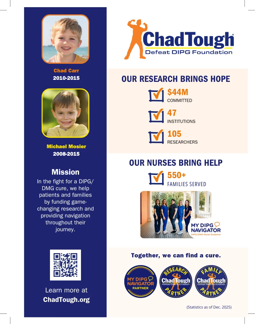 Every dollar moves critical research forward, helping scientists uncover the breakthroughs that will one day cure DIPG and DMG.