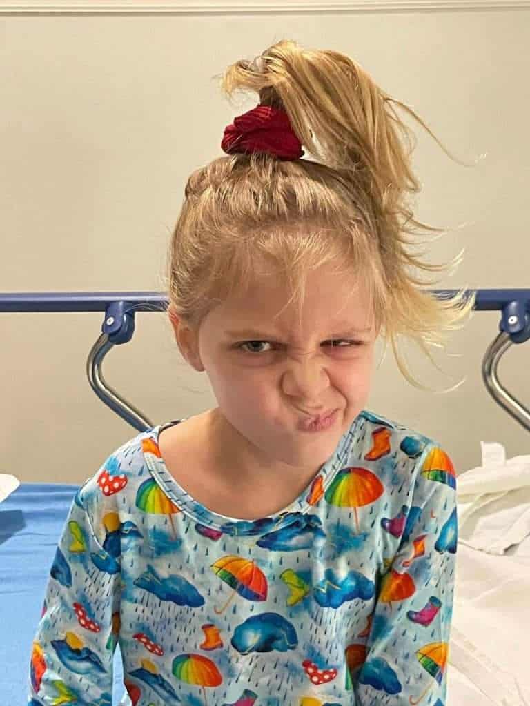 In late April of 2022, Jim and Julie Desrosiers noticed Esther’s left eye had begun turning inward. Coincidentally, Ether’s older sister Evelyn had had a similar issue and was seeing a pediatric ophthalmologist, Dr. Sebastian Troia, for treatment. On May 2, assuming Esther was experiencing the same vision problem, the family took Esther to see Dr. Troia. While there, they received the troubling news that Dr. Troia suspected there was something going on with Esther’s sixth cranial nerve. He recommended the family take Esther to Omaha Children’s Hospital for an immediate MRI.