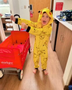 Despite the immense challenges, Lucas and his family have found moments of joy and connection. During his clinical trial treatment, Lucas showed incredible resilience. Even while navigating setbacks, such as elevated liver enzymes delaying his participation in the trial, he never lost his wit or spirit. His unique sense of humor emerged in moments like creating his “cookie nachos” or making sarcastic comments during strength-building walks.