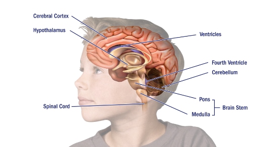 Diffuse intrinsic pontine glioma (DIPG) is a highly aggressive, difficult-to-treat brain tumor found in the area of the brainstem known as the pons. There are three parts that make up the brainstem – pons, midbrain, and medulla – which control critical functions such as breathing and heartbeat. Due to the location of the tumor in the brain and the speed at which the disease progresses, it is important to quickly develop an understanding of the disease and develop a plan for treatment, if desired. Pontine tumors are found in the pons of the brainstem.