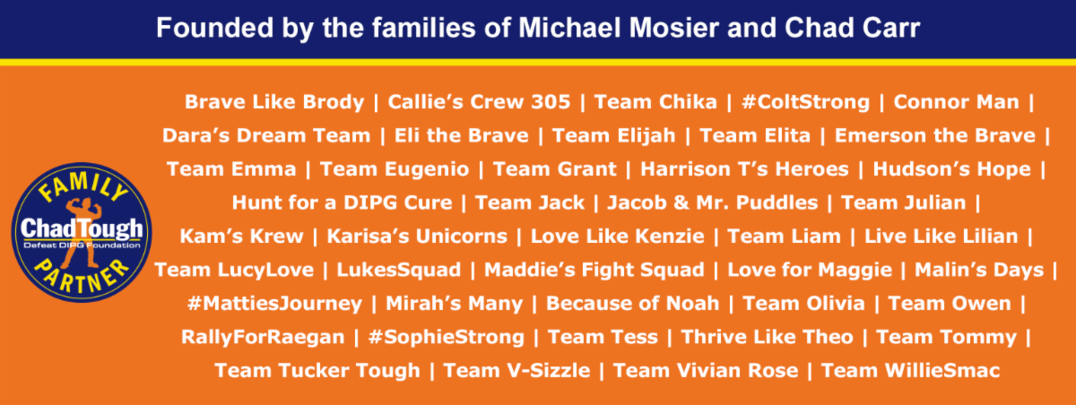 Founded by the families of Chad Carr and Michael Mosier, and fueled by over 40 Family Partners, the ChadTough Defeat DIPG Foundation is committed to changing the future for families facing a DIPG or DMG diagnosis, which is why we created the My DIPG Navigator program.